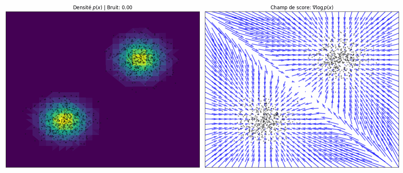 \[\boxed{L_{\text{DSM}_{q_\sigma}}(\theta) = \mathbb{E}_{(\tilde{\mathbf{x}}, \mathbf{x}) \sim q_\sigma(\tilde{\mathbf{x}}, \mathbf{x})} \left[ \left\| s_\theta(\tilde{\mathbf{x}}) - \frac{\mathbf{x} - \tilde{\mathbf{x}}}{\sigma^2} \right\|^2 \right]}\]over the joint density $q_\sigma(\tilde{\mathbf{x}}, \mathbf{x}) = q_\sigma(\tilde{\mathbf{x}} \mid \mathbf{x}) p(\mathbf{x})$.